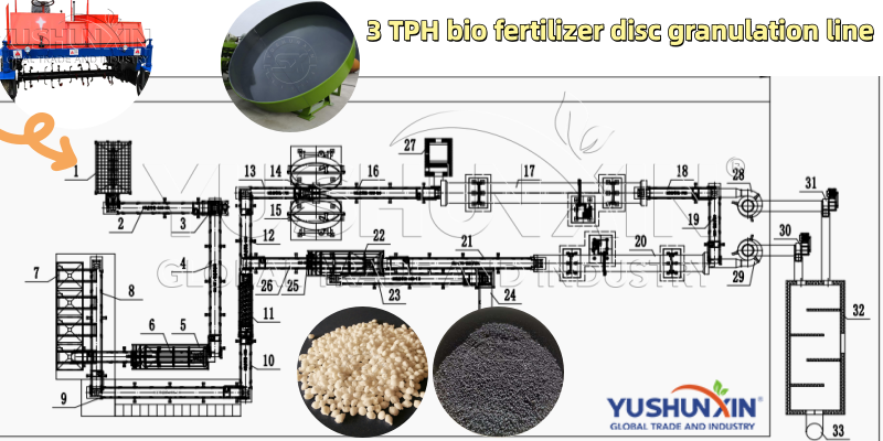 For investors with a budget over $2,000,000, YUSHUNXIN can design a large-scale biofertilizer granulation production line with a capacity of 5–20 t/h.