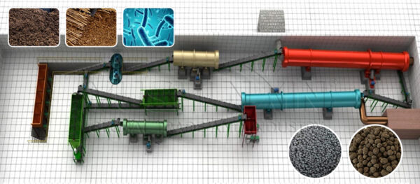 - The mixed materials then enter the drum pelletizer, where water or liquid binders help form round and dense biofertilizer pellets.